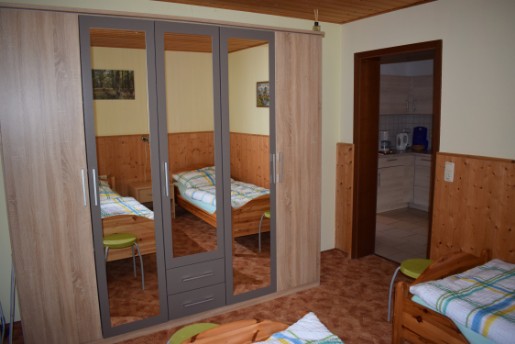 Im Kinderzimmer befinden sich zwei getrennt gestellte Betten sowie der Schrank für Ihre Kleidungsstücke.